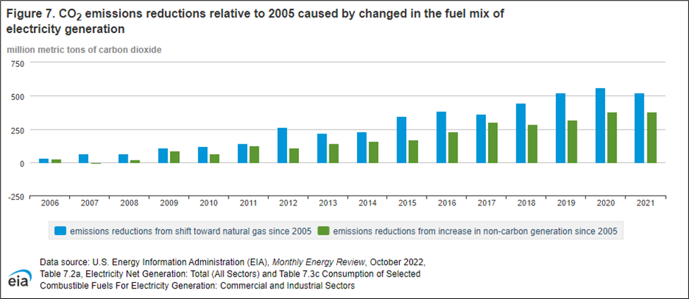 In recent studies RBAC has conducted, we have examined how natural gas and LNG are going to play a crucial role in lowering carbon emissions over the next few decades. Coal-fired power generation contributes far more to carbon emissions than gas-fired power generation does. For this reason, many countries who have relied on coal to meet their energy needs are first transitioning to using natural gas. Countries such as India and Sri Lanka [18] are replacing a significant amount of coal-fired generation with natural gas. The United States also successfully implemented the largest carbon emissions reduction in history by replacing coal-fired generation with natural gas. (Figure 6). There is no reason why this cannot be implemented throughout the world creating more energy security and reducing energy poverty, while still reducing carbon emissions and improving the environment.