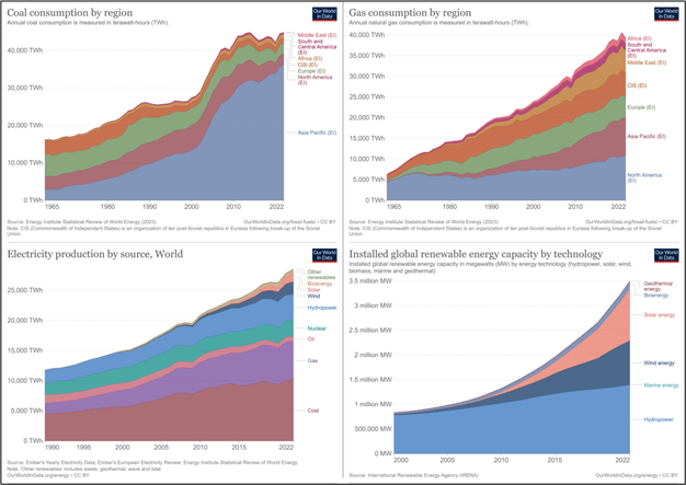 In 2022 and now 2023, we are seeing record coal and gas use in Asia and renewed use coal in the West to meet the demand for energy—demand that is little reduced by growing levels of renewable energy.[6] Europe has also had to import enormous quantities of LNG from North America as well as the Middle East to meet their natural gas storage targets, which they accomplished months ahead of schedule.[7]