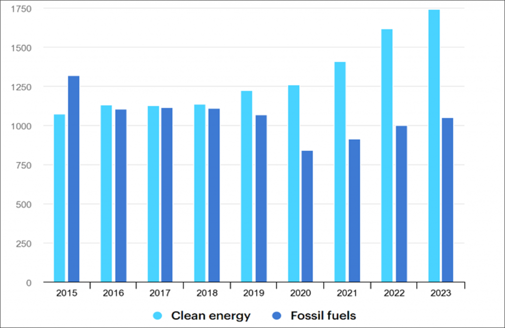 Despite these “setbacks” to the energy transition, the U.S., with the Inflation Reduction Act (IRA), and the EU’s response was to invest heavily in speeding up its deployment of renewables on the belief that prices would be stable or decreasing and that these could displace fossil fuels as part of an “energy transition” started decades earlier.[8]
